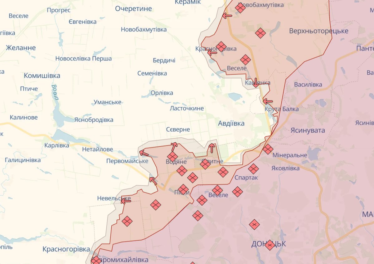 На Авдеевском направлении противник в течение суток наступательных действий не производил. Нанес авиационные удары по Авдеевке и Первомайскому, осуществил артиллерийские обстрелы населенных пунктов Авдеевка, Первомайское, Карловка и Невельское Донецкой области.