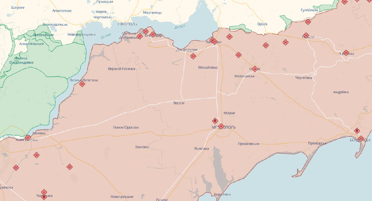 В Запорожском и Херсонском направлениях противник продолжает вести оборонные действия. Нанес авиационные удары в районах Новополь Донецкой области, Ольговское Запорожской области, Берислав и Веселое Херсонской области. Совершил артиллерийские обстрелы населенных пунктов Свободное Поле, Зеленое Поле, Новополь, Темировка Донецкой области; Ольговское, Малиновка, Гуляйполе, Железнодорожное, Малая Токмачка, Новоандреевка, Степное и Каменское Запорожской области; Казацкое, Тягинка, Ивановка, Днепровское, Кизомыс Херсонской области и город Херсон.