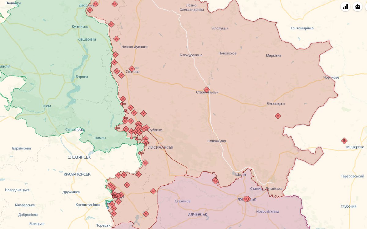 На Лиманском направлении в течение минувших суток противник вел безуспешные наступательные действия в районе Белогоровки Луганской области. Артиллерийским обстрелам подверглись Макеевка, Невское, Белогоровка Луганской области и Верхнекаменское, Торское, Спорное, Раздоловка Донецкой области.