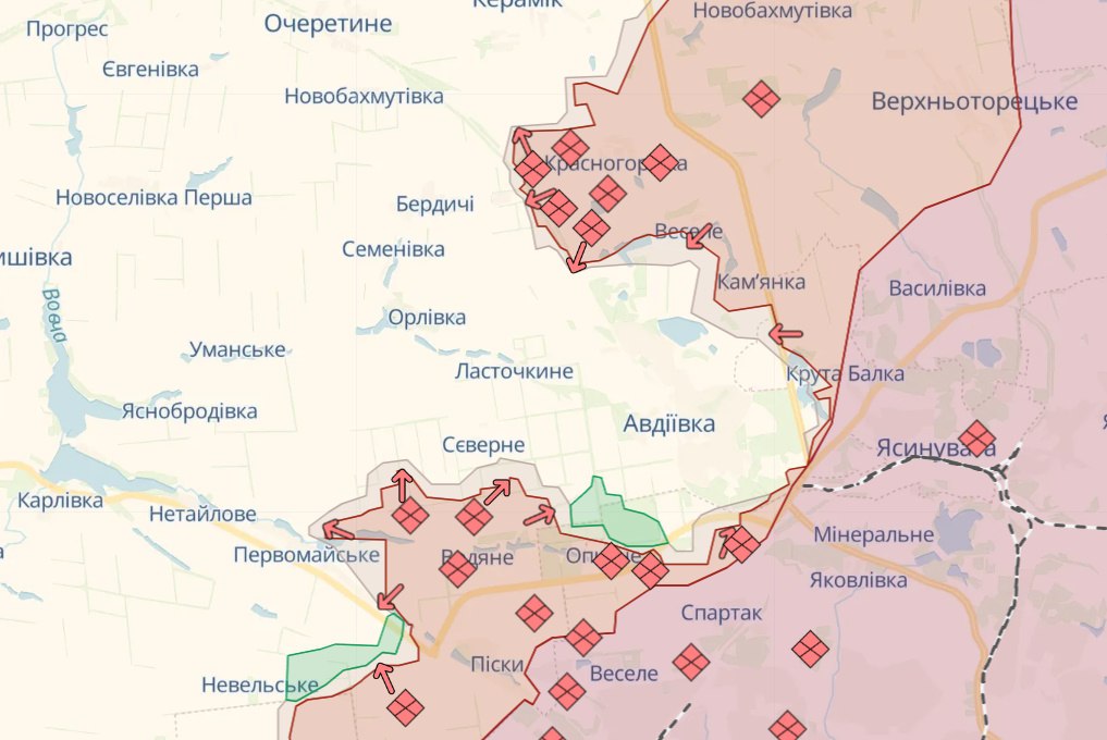 На Авдеевском направлении российская авиация вела безуспешные штурмовые действия в районе Авдеевки и Северного Донетчины, где украинские защитники отбили 10 атак. Артиллерийским и минометным обстрелам врага подверглись около 15 населенных пунктов области, в частности Новокалиново, Орловка, Ласточкино, Авдеевка, Опытное и Северное.