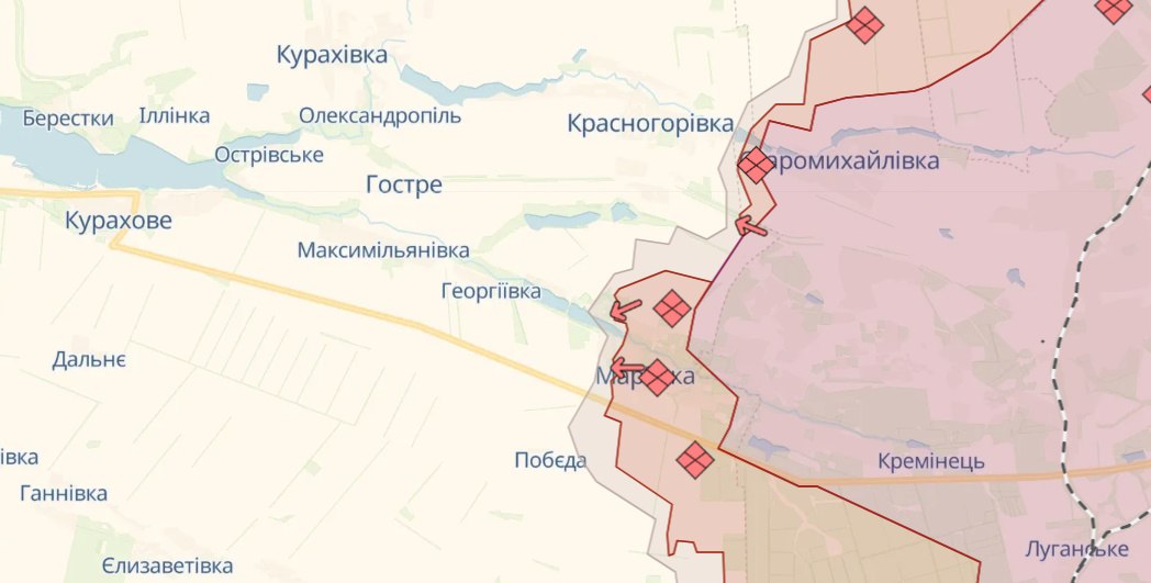 Марьинское направление: противник совершил безуспешный штурм возле Новомихайловки и Марьинки, где ВСУ отразили около 11 атак. Обстреляли 10 н. п., среди них Красногоровка, Георгиевка, Марьинка, Победа, Новомихайловка.