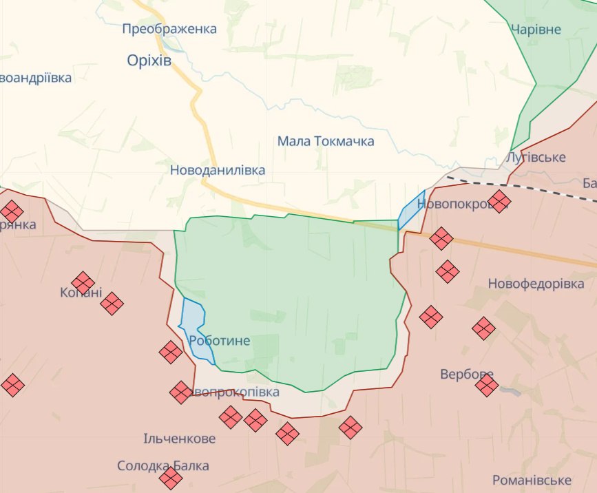 Запорожское направление: штурмов не было. ВСУ отразили шесть атак возле Красного, Работино и северо-западнее Вербового. Обстреляли более 15 н. п., среди них Гуляйполе, Орехов, Малая Токмачка, Работино, Каменское.