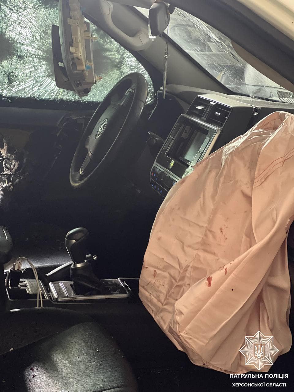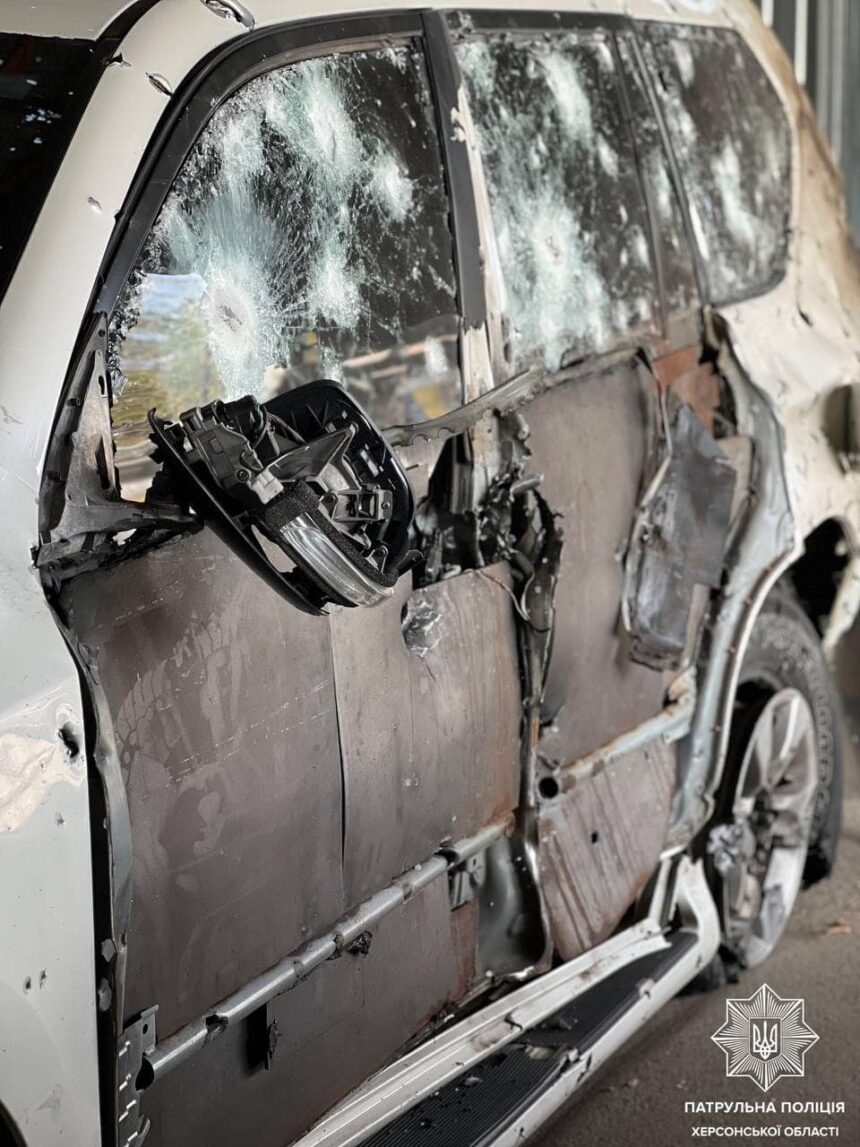 "Врачи боролись за жизнь, но, к сожалению, один из патрульных полицейских умер на операционном столе… Так выглядит служебный автомобиль херсонских патрульных, которые сегодня попали под обстрел. За их жизнь сейчас борются врачи", - говорится в сообщении.