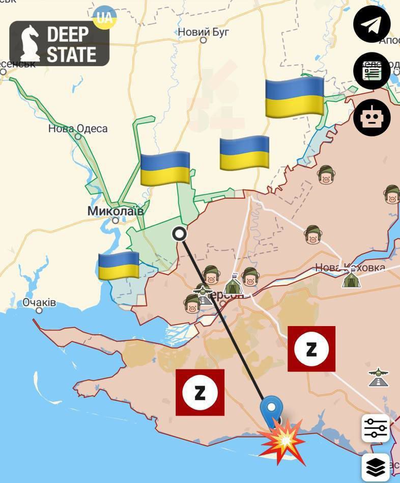 "Скадовск. Есть информация, что ВСУ накрыли БК орков. Туда прилетело 2 ракеты", - говорится в сообщении.