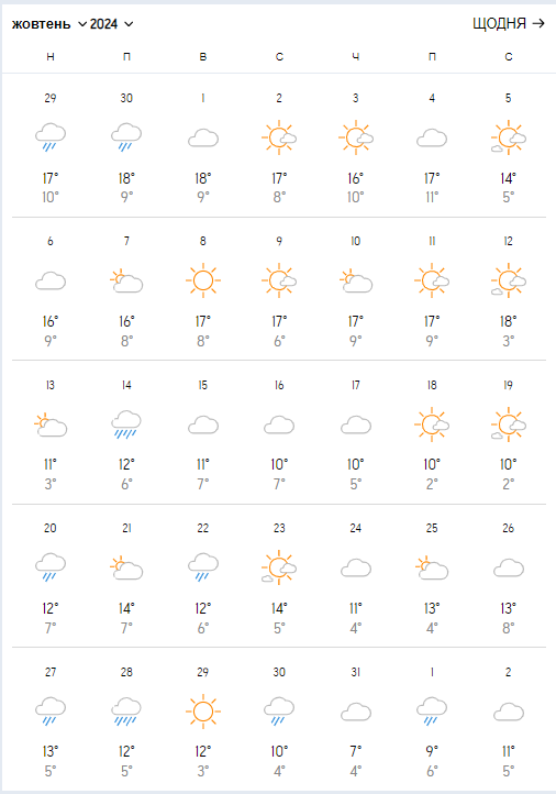 "Апостроф" собрал прогнозы синоптиков на октябрь-2024.