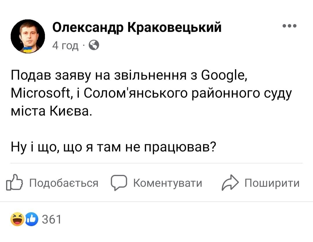 Многим показалось смешной именно формулировка о том, что он "написал заявление об увольнении", в то время как его работа была внештатной.