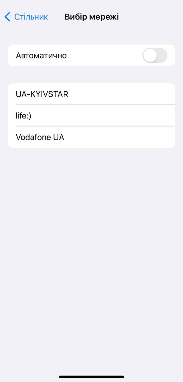 Пользователи могут выбрать: Kyivstar, Vodafone или Lifecell.