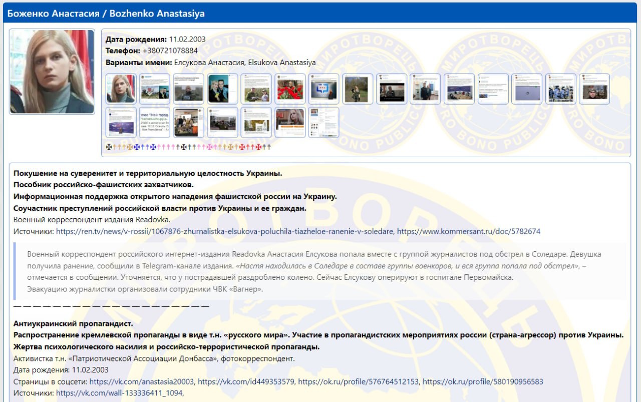 Российский пропагандист Семен Пегов получил серьезное ранение под Донецком и его "коллега", фигурант базы "Миротворец", 19-летняя Анастасия Елсукова также "заработала" "несколько осколочных ранений".