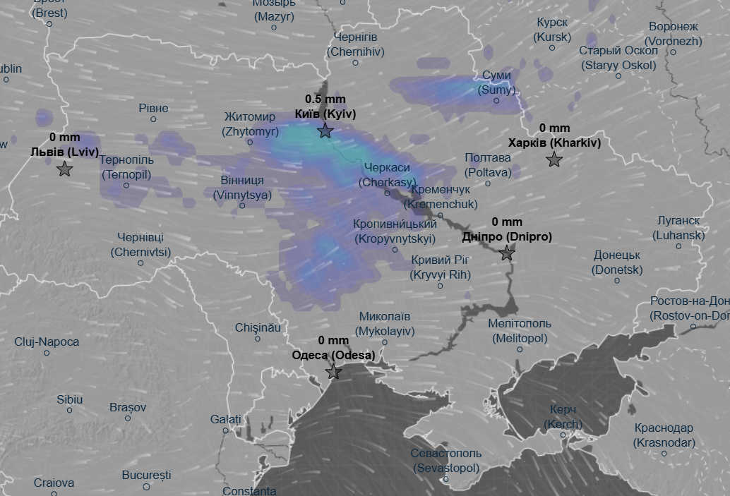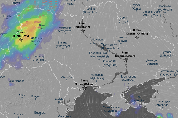 Ночью и утром сильные ливни с грозами накроют восточные и южные области, вечером небольшие дожди пройдут в Сумской и Харьковской областях. В западных областях осадков не ожидается.