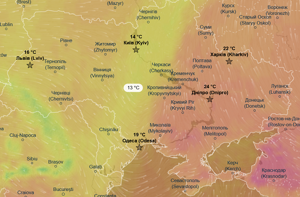 В течение суток западные и некоторые северные и центральные области накроют сильные ливни, местами с грозами. Ночью ожидается от +8 до +13, днем температура снизится до +17 градусов.