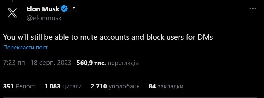 Об этом сообщил сам владелец социальной сети Илон Маск.