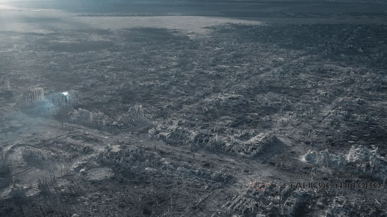 "Когда вы слышите слово "Апокалипсис", что приходит на ум? – конец света, конец жизни, что-то страшное и необратимое, но вот такое сейчас", - подписали российские агрессоры кадры ими же и разрушенного города.