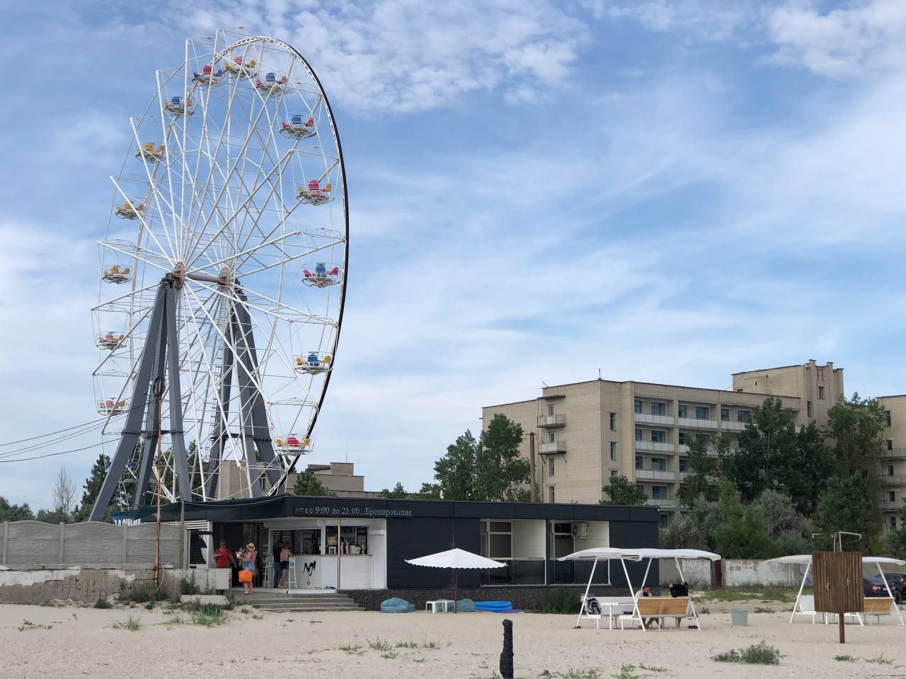Поселок Лазурное – украинский курорт на берегу Черного моря – расположен в 20 км от Железного Порта и тоже находится под временной оккупацией. Когда-то на пляжах не было свободного места, ведь отдыхающие со всей Украины выбирали поселок для того, чтобы покупаться в теплом море и подышать морским воздухом, а сейчас там пустынно.