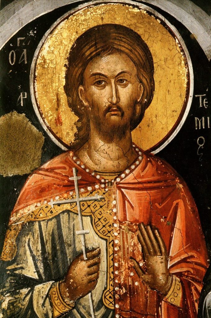 Великомученик Артемий был одним из выдающихся военачальников в правление Константина Великого, а затем – его сына и преемника Констанция. Артемий, имел много наград за отличную службу и был поставлен наместником Египта. В этой должности он много сделал для распространения и укрепления христианства в Египте. Когда императора Констанция на престоле сменил Юлиан, который был приверженцем язычества, он велел арестовать Артемия и поддать пыткам. В результате Артемий был обезглавлен.
