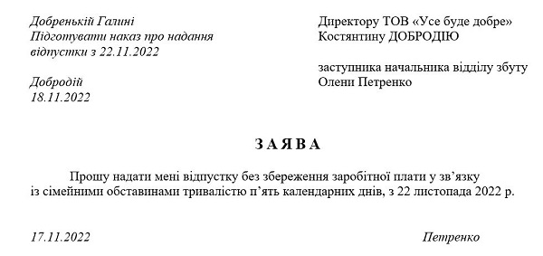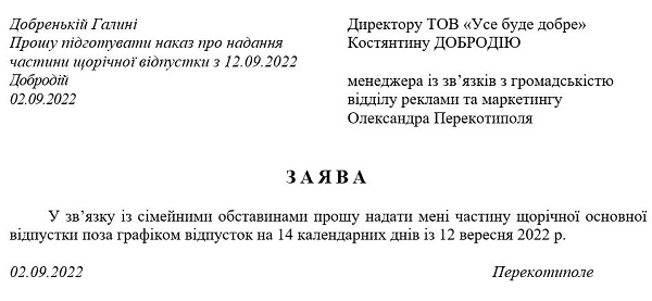 Отпуск во время военного положения – образец заявления