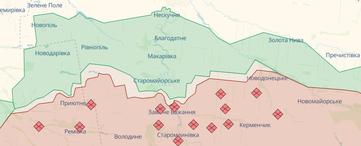 Шахтерское направление: украинцы отбили атаку возле Старомайорского. Рссияне обстреляли около 10 н. п., среди которых Угледар, Пречистовка, Благодатное, Урожайное Донецкой области.