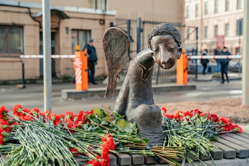 Отлитая в бронзе скульптура "Печальный ангел" – работа петербургского художника Романа Шустрова, который скончался от коронавируса в мае прошлого года.