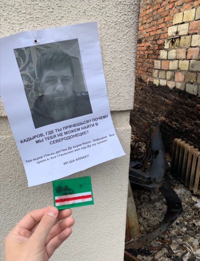 Местные партизаны распространили в городе листовки с посланием для кадыровцев – оккупантов из Чечни, сообщает Центр национального сопротивления.