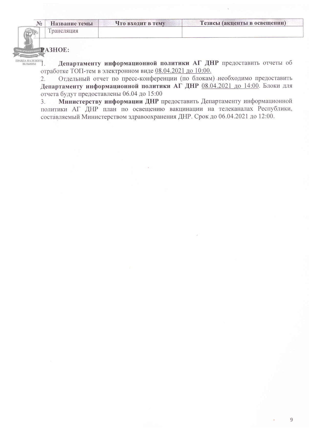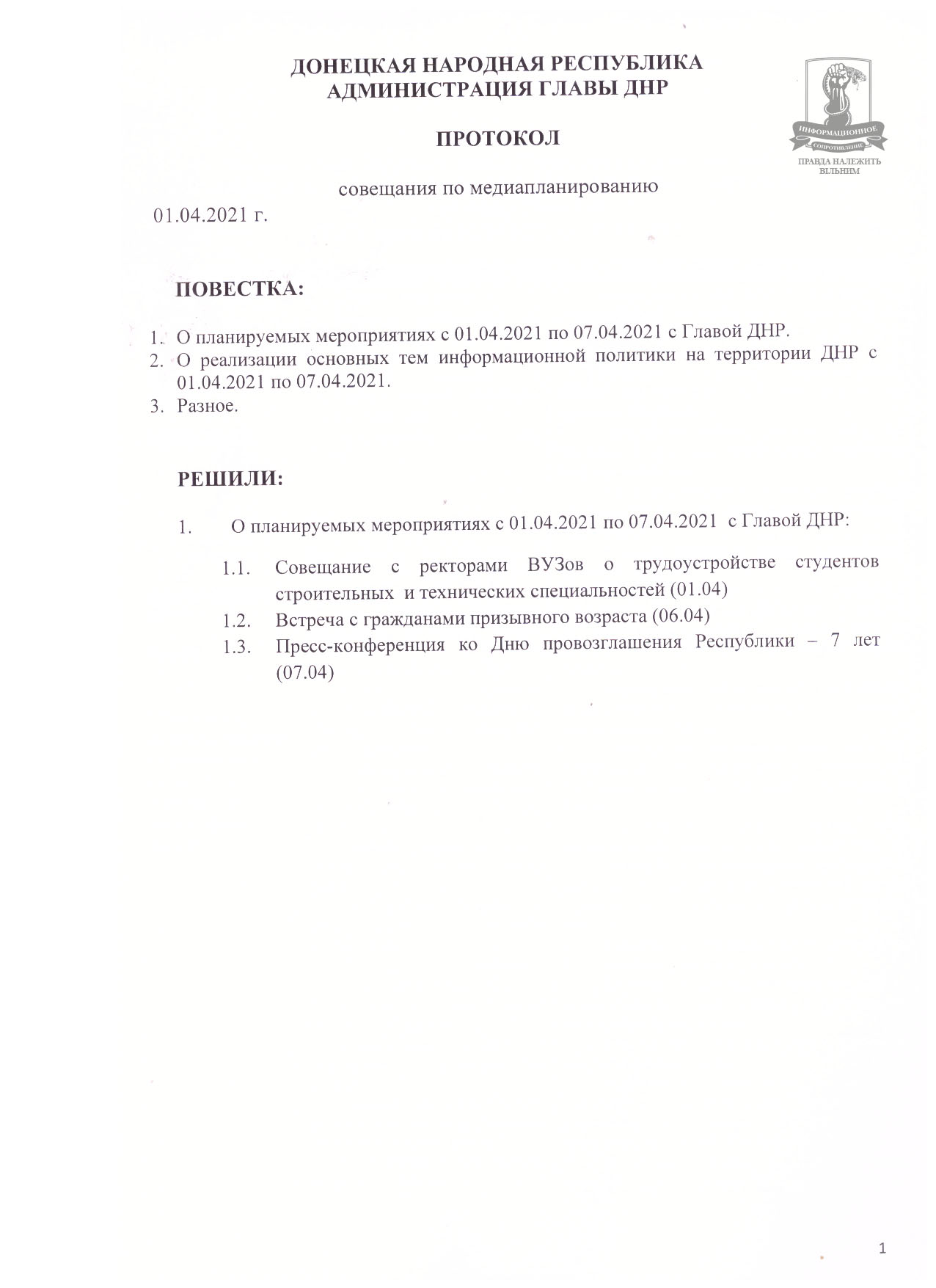 Судя по бланку этого документа, совещание по медиапланированию проводилось в так называемой "Администрации главы Донецкой народной республики".