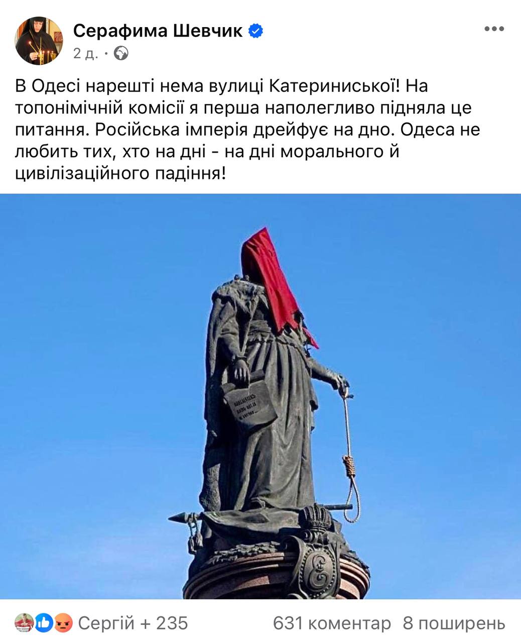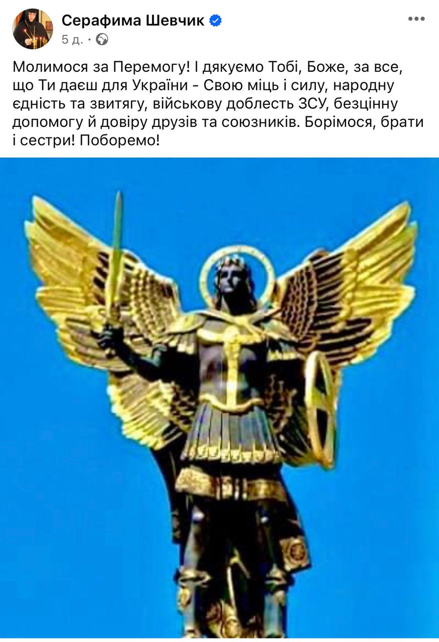 Настоятельница Свято-Архангело-Михайловского женского монастыря в Одессе игуменья Серафима, которая ранее была сторонницей русского мира и РПЦ, перешла на украинский язык, выступает за деколонизацию и демонтаж символов империи, поддерживает ВСУ.