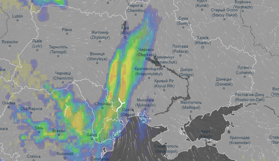Об этом свидетельствуют данные на сайте мониторинга погоды Ventusky.