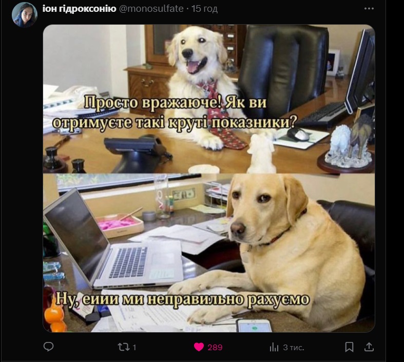 Скриншот с ее подсчетом изложил Джизус Троещинского Патриархата в Х, с нецензурной подписью.