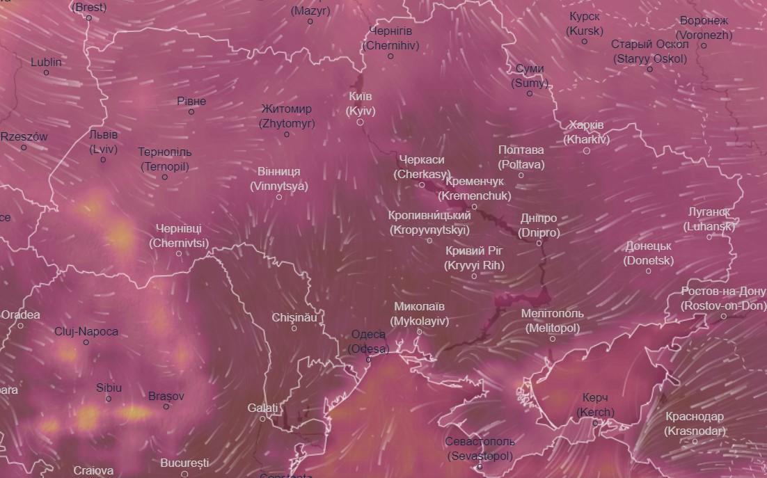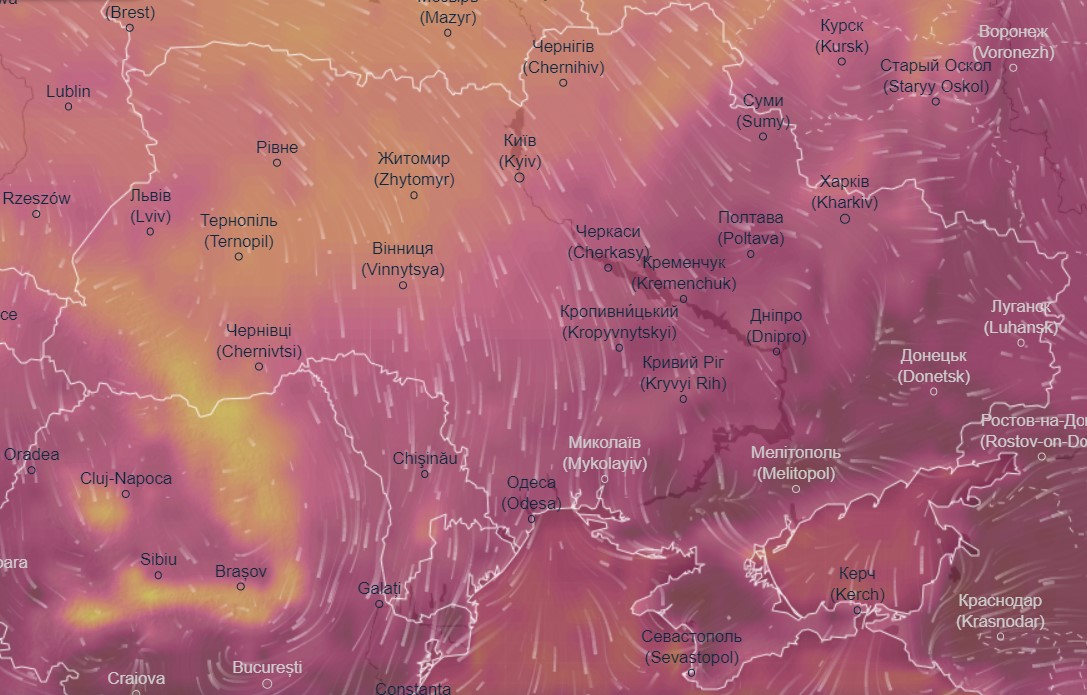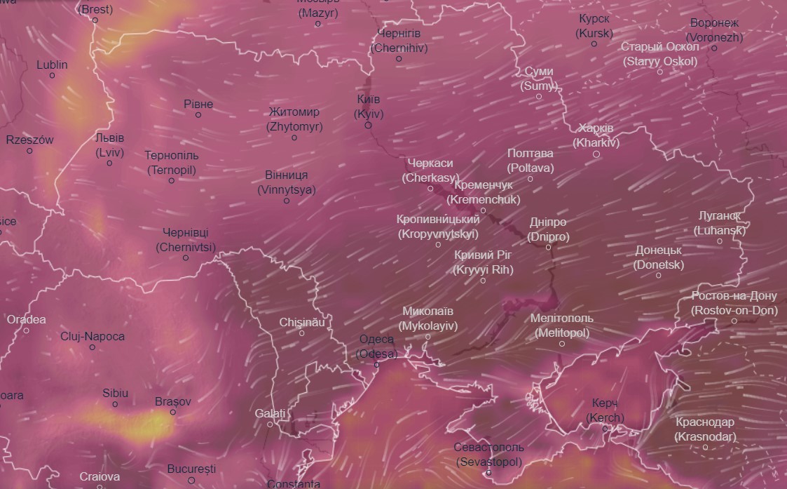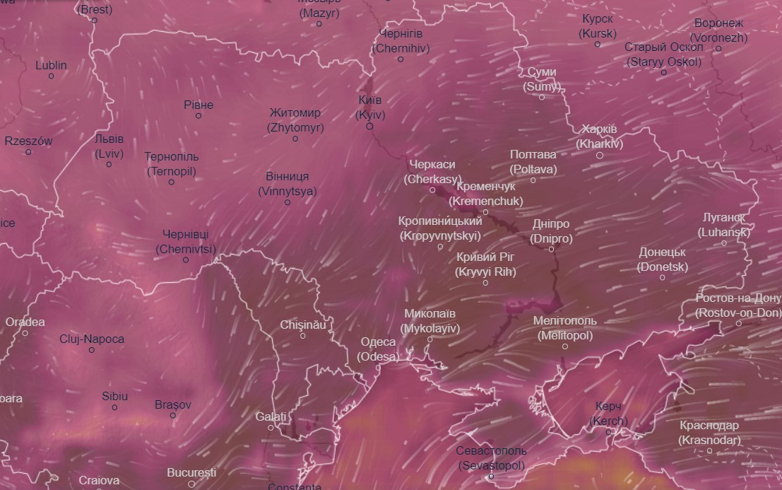 Об этом свидетельствуют данные радара погоды Ventusky.com.