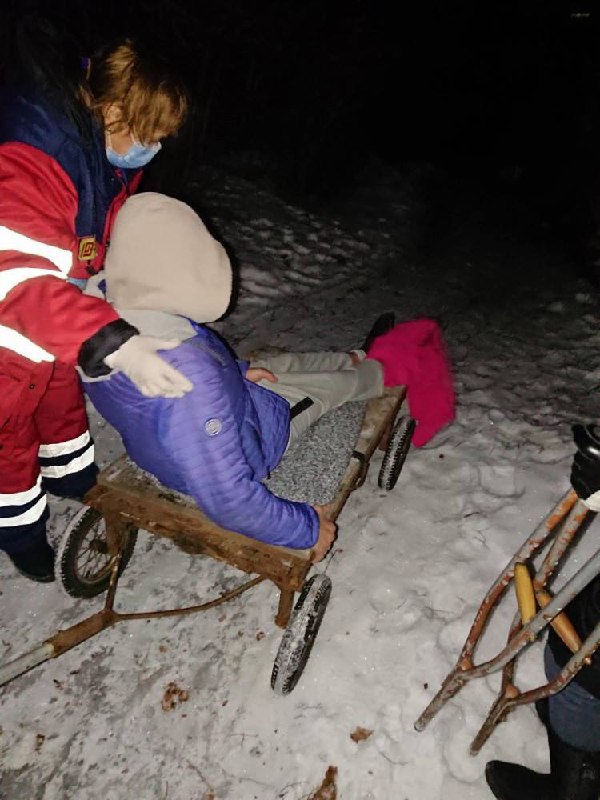 У соседей пациента врачи нашли хозяйственную тележку, на которой пришлось транспортировать мужчину обратно до служебного автомобиля.