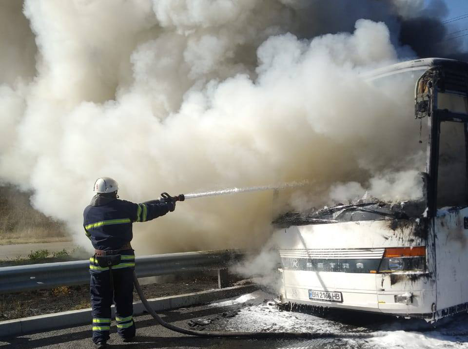 Как сказано в сообщении, после прибытия спасателей было установлено, что в автобусе сообщением "Киев-Одесса" находились 20 пассажиров. Когда подоспела помощь, все они уже покинули салон транспортного средства.