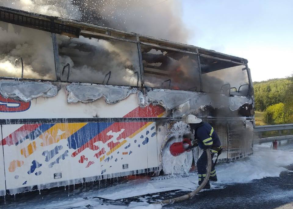 Во вторник, 1 сентября, на автотрассе возле села Снежки Ставищанского района (Киевская область) произошло возгорание пассажирского автобуса "Сетра".