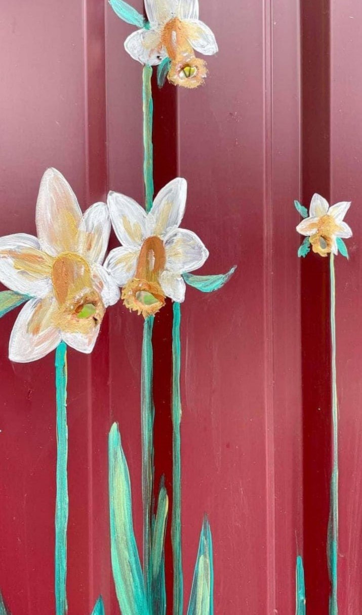 Как видно на снимках, местные жители рисуют на заборах нарциссы и маки, вписывая в композицию отверстия от российских пуль. Россияне несут нам смерть и разрушение, но украинская земля все равно прорастает цветами - и живыми и нарисованными на месте зверств оккупантов.