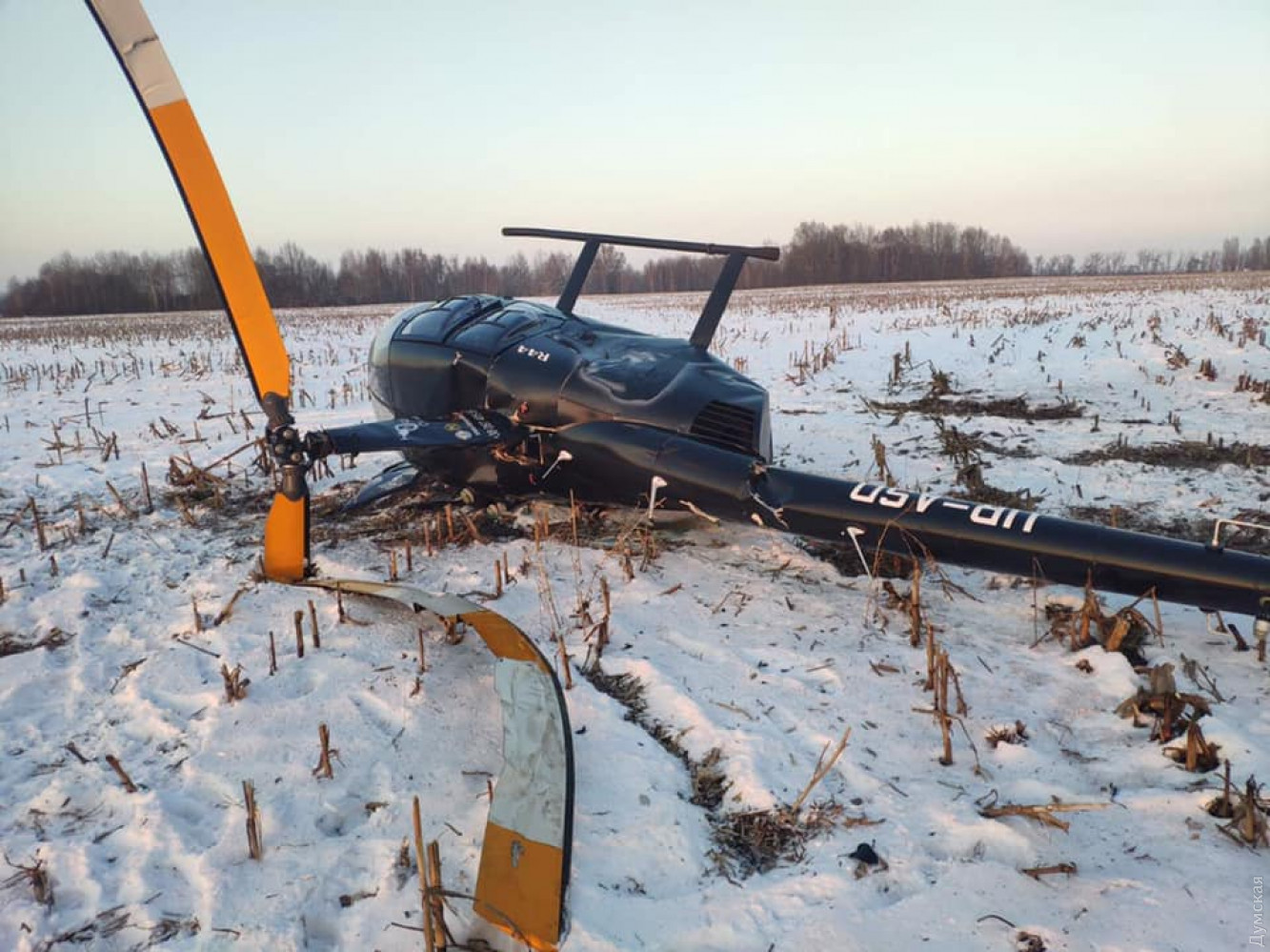 В Киевской области во время неудачной посадки потерпел крушение вертолет Robinson 44.