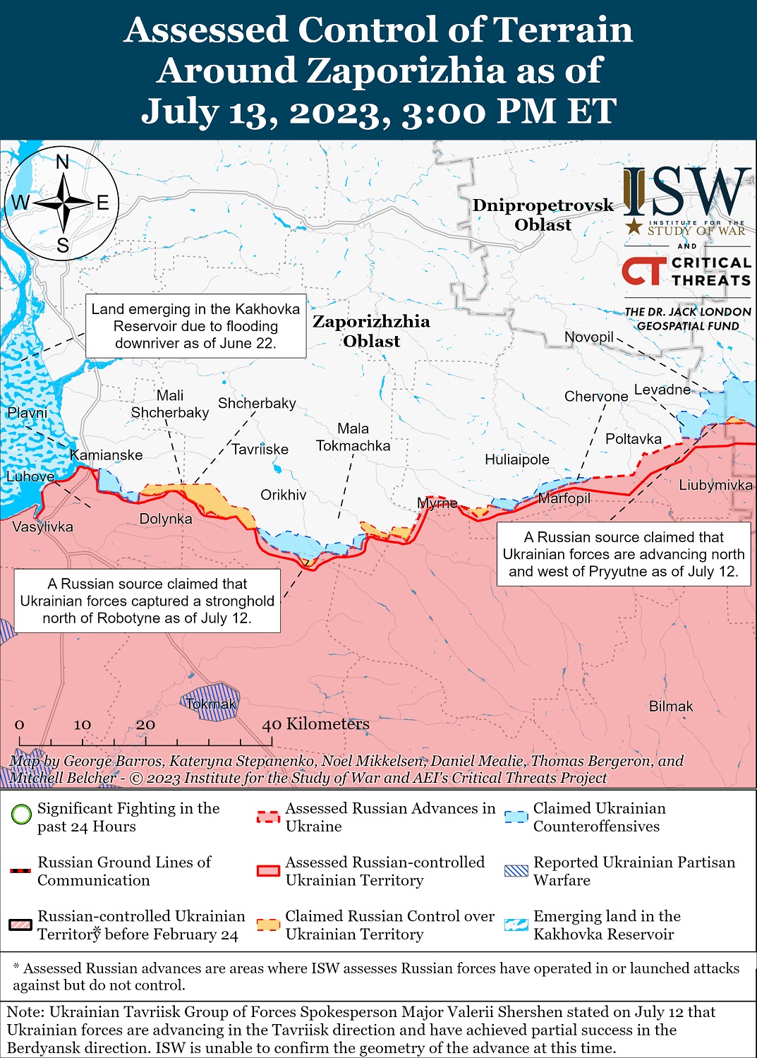 По состоянию на 13 июля, украинские войска сохраняют ограниченное присутствие в восточной (левобережной) части Херсонской области.