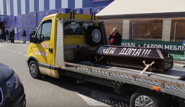 На Львовщине по улицам Трускавца, Стебника и Дрогобыча на катафалке провезли гроб с надписями "Карантин" и "Сиди дома".