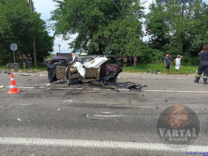 В понедельник, 27 июля, во Львовской области произошло ДТП, в результате аварии обломки машины разбросало по всей дороге.