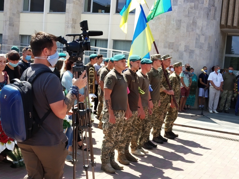 В последний путь провести погибшего героя пришли его родственники, друзья, одноклассники, руководство города и атомной станции, ветераны и участники АТО, волонтеры и местные активисты - патриоты, общественные деятели, работники предприятий и организаций.