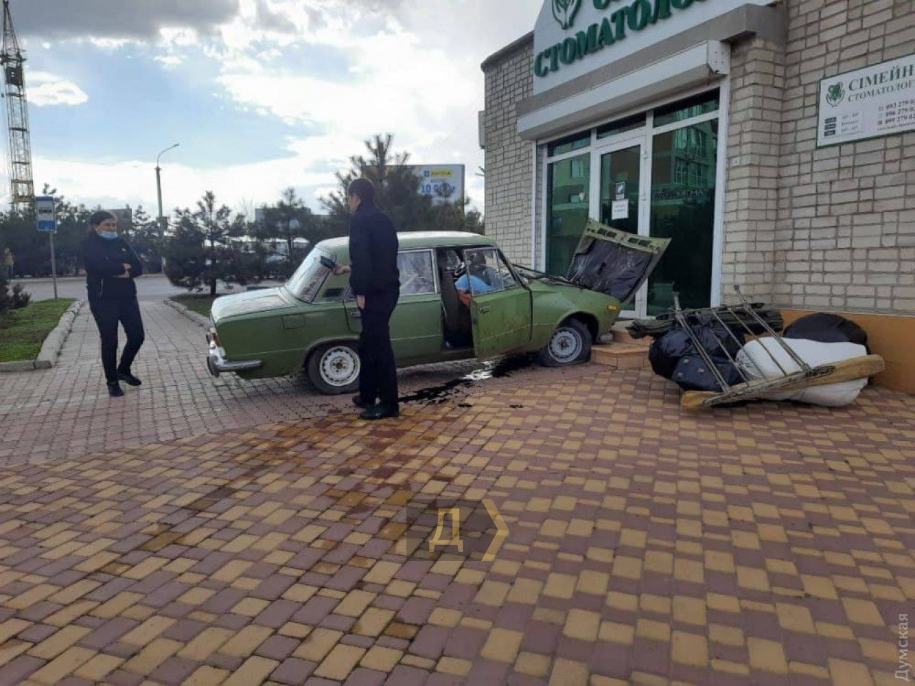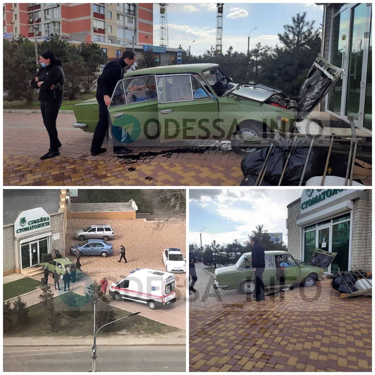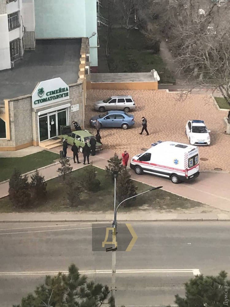 В городе Черноморске Одесской области автомобиль ВАЗ-2105 врезался в ступеньки у входа в клинику "Сімейна стоматологія".