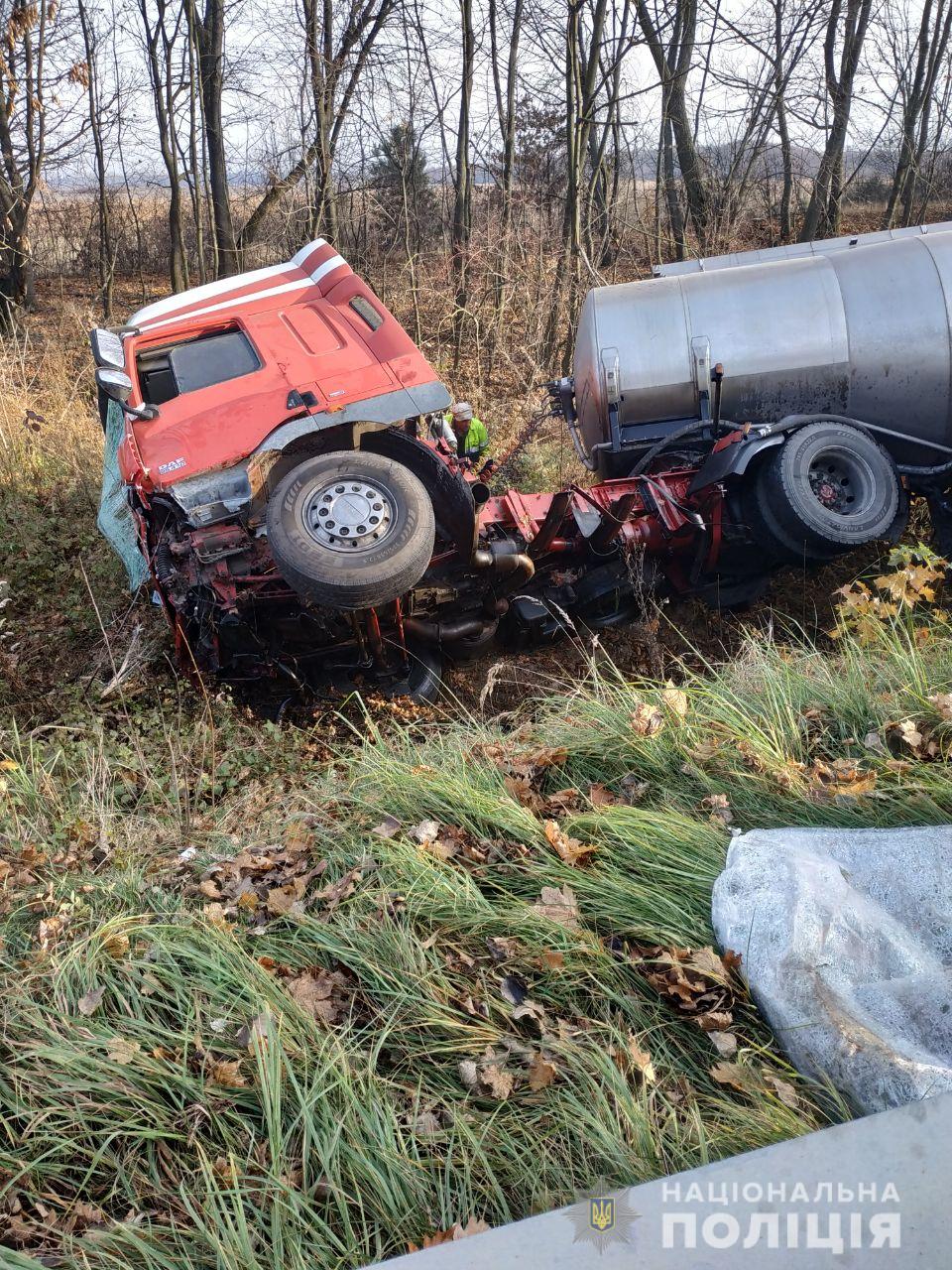 Водитель грузовика, 36-летний житель Радомышль, получил перелом ноги и многочисленные ушибы. Сейчас он находится в больнице.