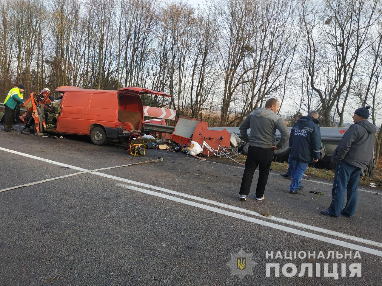 Водитель микроавтобуса и двое его пассажиров, супруги ровенчан 37-ми и 45-ти лет, погибли на месте происшествия. Их тела с искореженного автомобиля доставали спасатели.