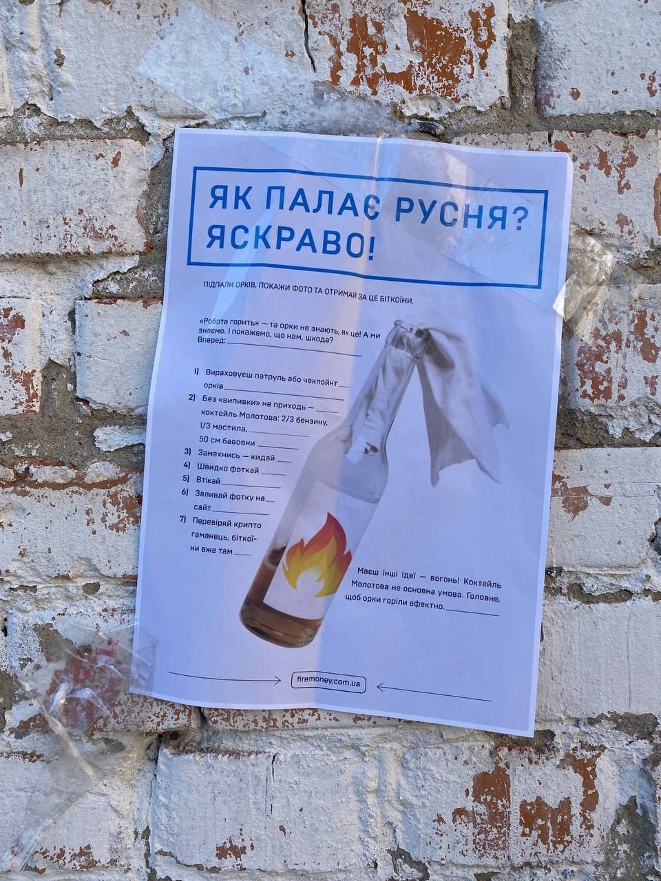 "Подожги орков, покажи фото и получи за это биткоины", - с такого призыва начинается листовка.