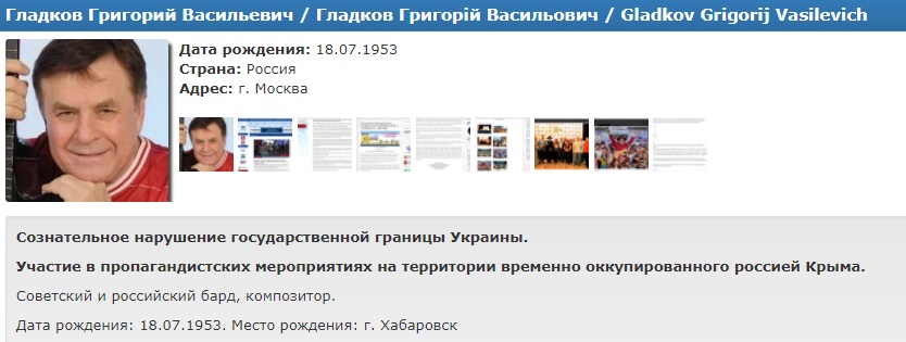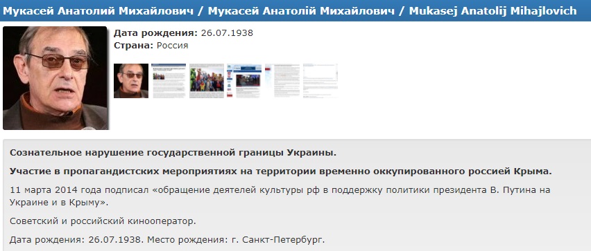 В базу данных украинского центра "Миротворец" попали ряд известных культурных деятелей из РФ, большинство которых незаконно посетило Крым в сентябре 2017 года.