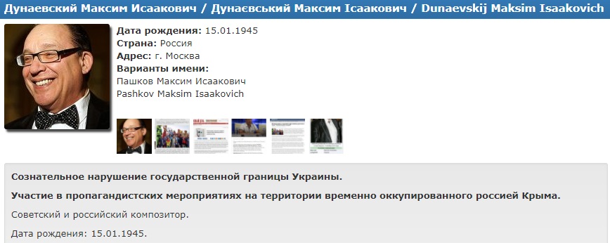 В частности, в раздел "Чистилище" на сайте центра попали певец Сергей Крылов, бард и композитор Григорий Гладков, актер Александр Лойе, известный советский и российский композитор Максим Дунаевский и другие.