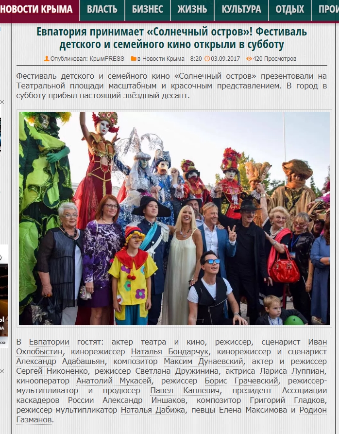Россияне в сентябре этого года принимали участие в фестивале детского и семейного кино "Солнечный остров" в оккупированной Евпатории.