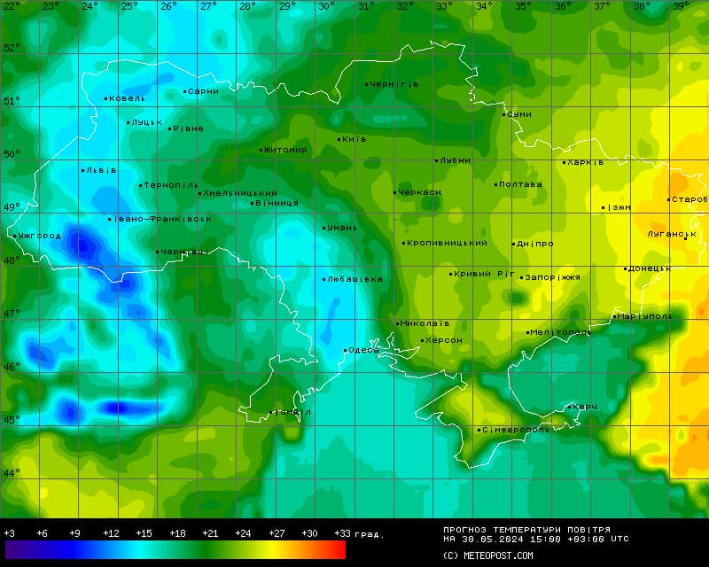 Температура воздуха снизится во Львовской, Ивано-Франковской, Волынской, Ровенской областях, Закарпатье и Одесской области: до +20+23 градусов.
