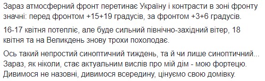 16-17 апреля потеплеет, но будет сильный северо-западный ветер, 18 апреля и на Пасху снова немного похолодает.