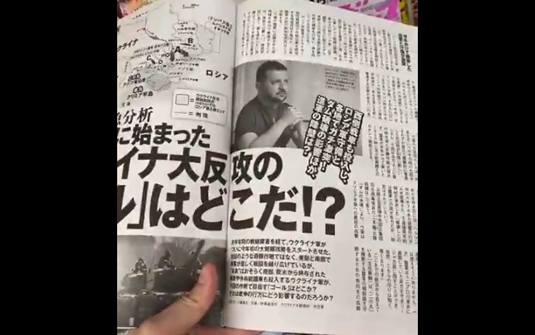 Так, он показал видео, как мужчина листает корейский журнал, где сразу после азиатских девушек в откровенных нарядах вдруг появляется фото и вероятно статья о главе украинского государства.
