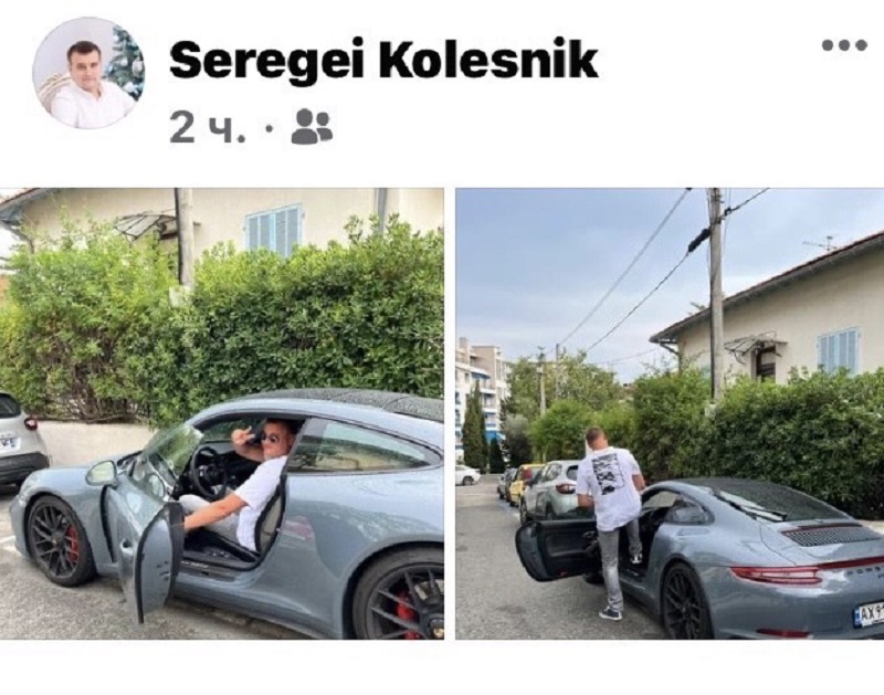 На фото видно, что Колесник ездит по Ницце на автомобиле Porsche 911, стоимость которого - около 200 тысяч евро, с харьковскими номерами. На одном из фото Колесник вместе с семьей находится на центральной площади Ниццы с покупками из элитного бутика HERMÈS.