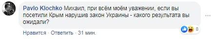 "Михаил, при всем моем уважении, если вы посетили Крым нарушив закон Украины - какого результата вы ожидали?" - задают вопрос комментаторы.
