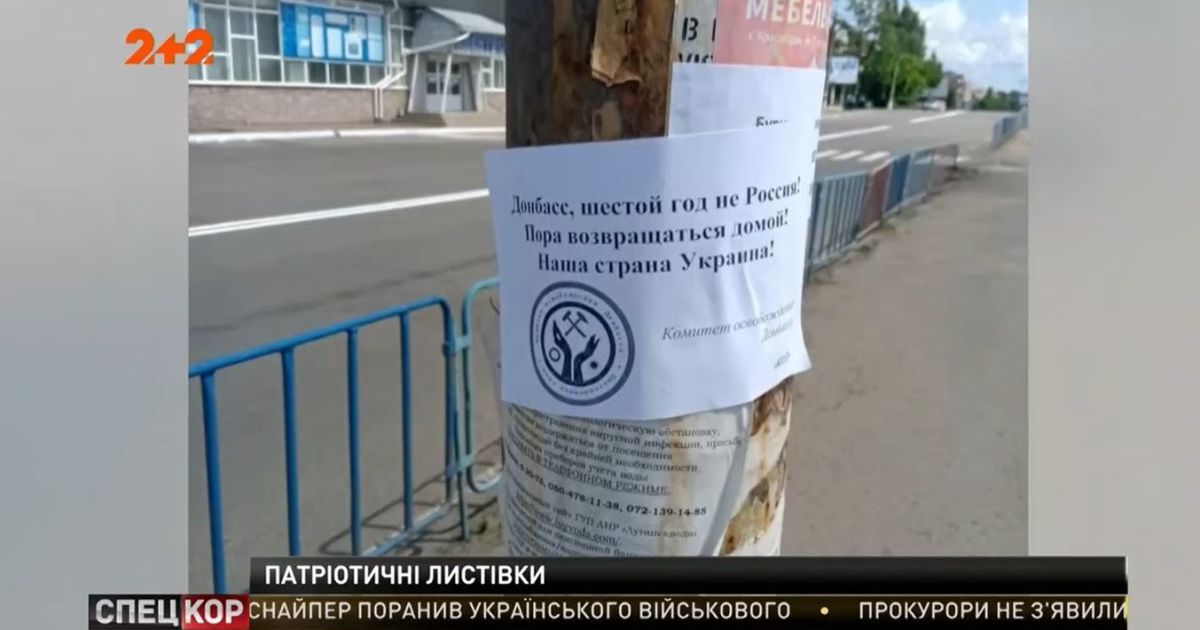 Листовки-напоминания с патриотическими лозунгами расклеили во многих оккупированных городах Донбасса. На них говорится: "Украина - вернись", "Не забудем, не простим! Низкий уровень медицины и уничтожение угольной промышленности", "Российский оккупант, если не способен прокормить людей - вон из Украины", "Донбасс шестой год не Россия, пора возвращаться домой!".