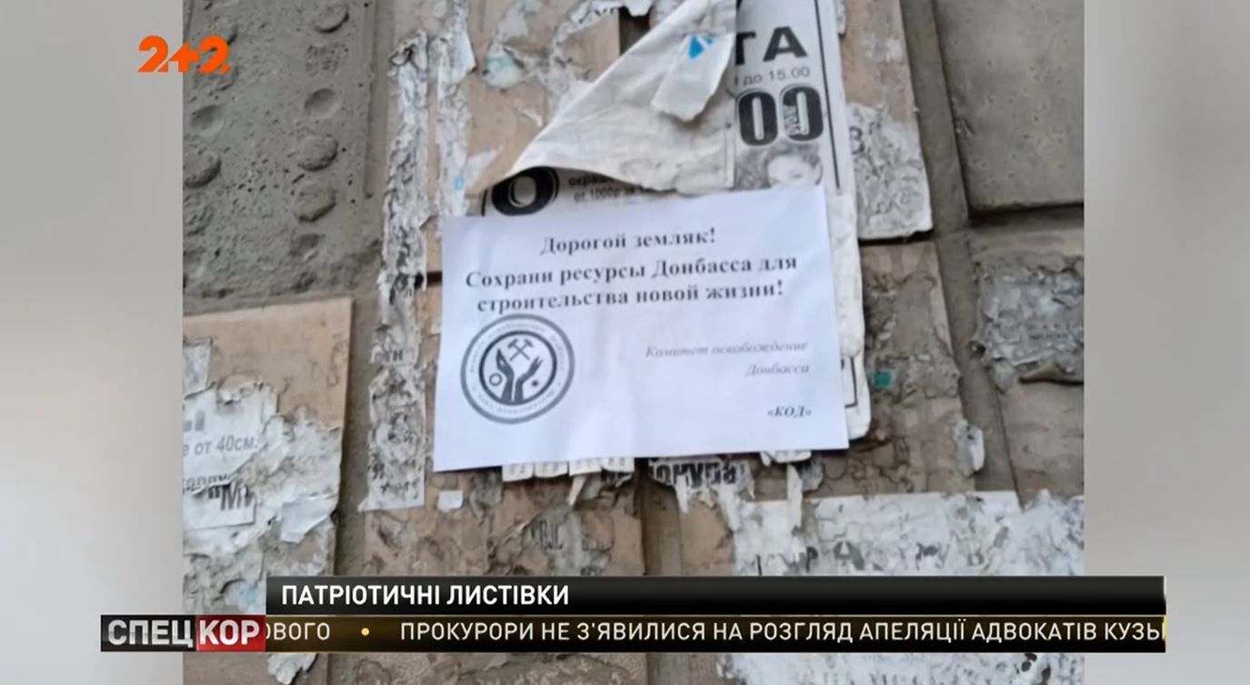 Отмечается, что накануне появления таких листовок прошло тайное собрание жителей Донецкой и Луганской областей, которые выразили готовность противодействовать российской агрессии. Но сами листовки долго не провисели - оккупанты их уничтожили.